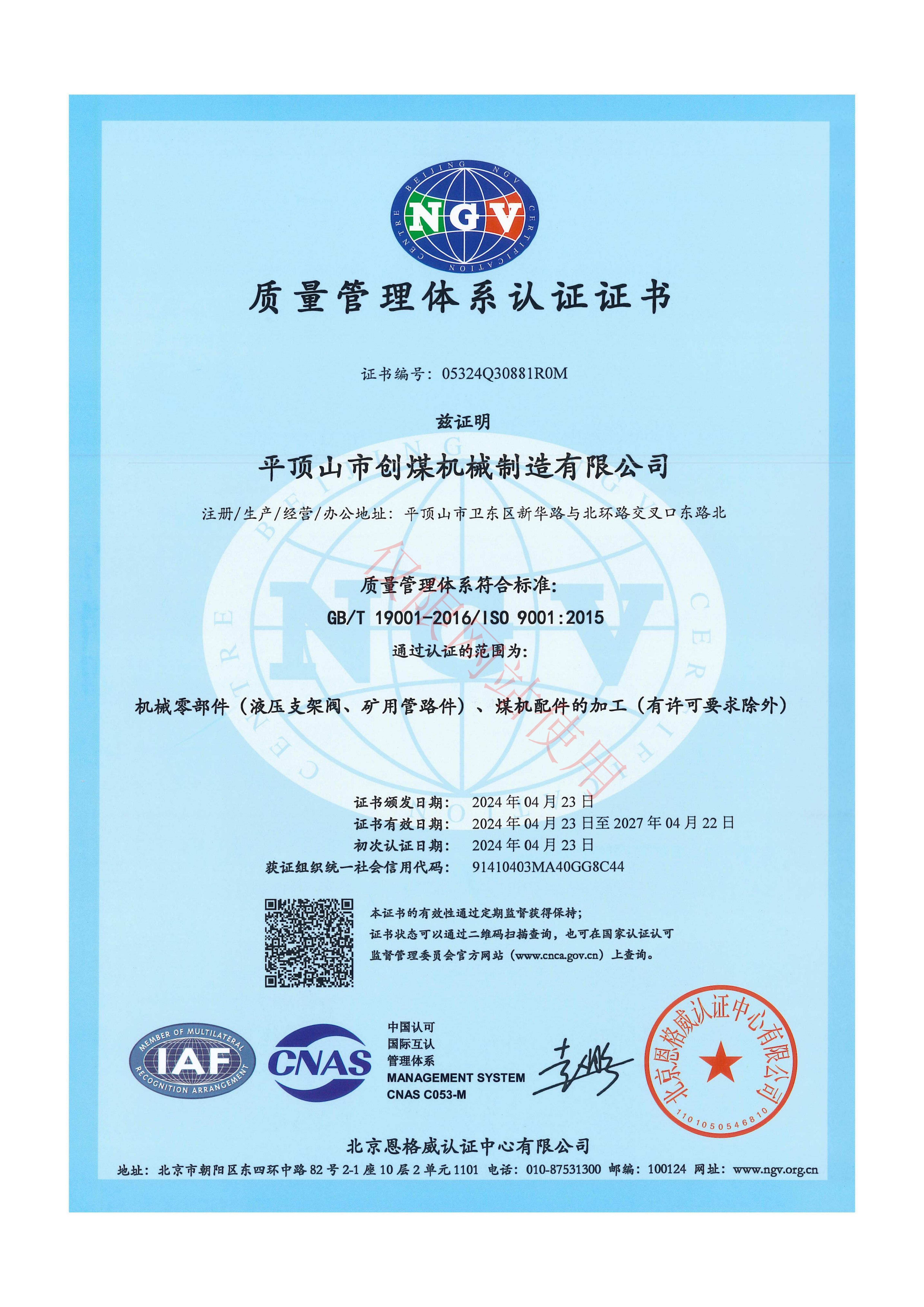 ISO質(zhì)量質(zhì)量管理體系認(rèn)證證書(shū)