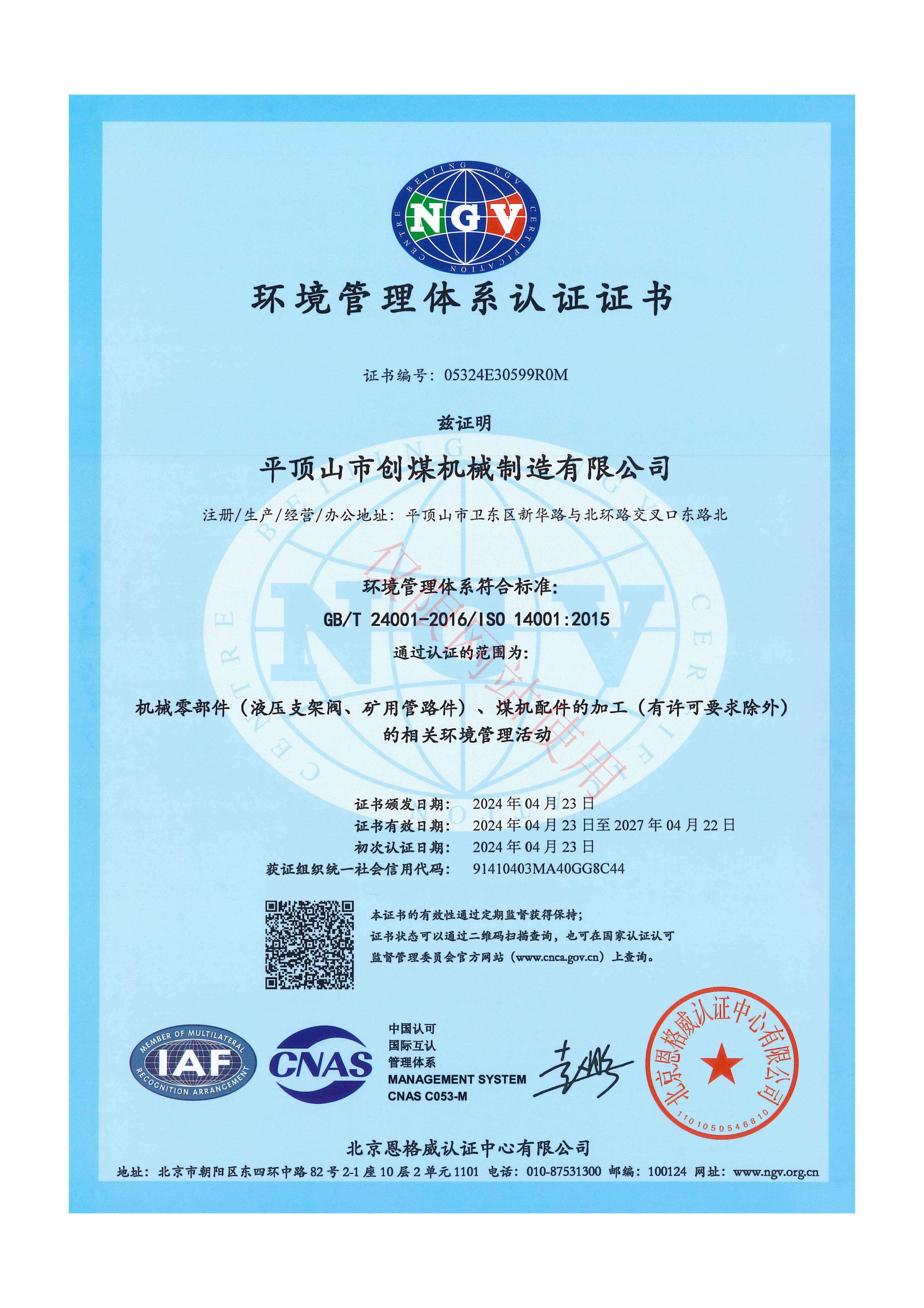 ISO環(huán)境管理體系認(rèn)證證書(shū)
